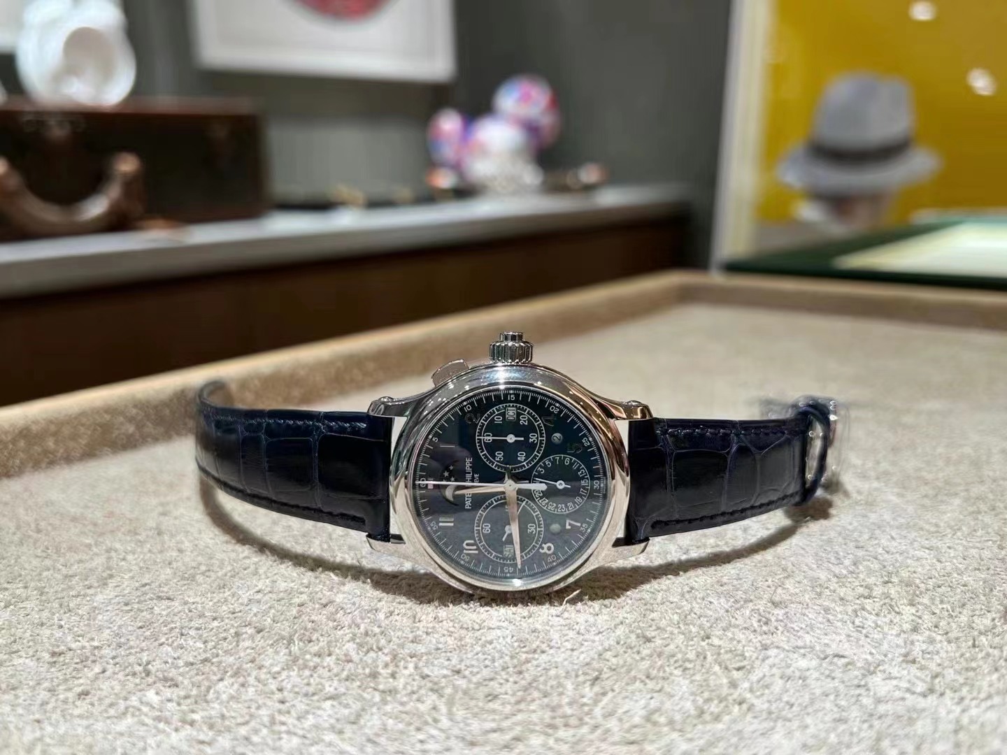 百达翡丽超级复杂功能时计系列5372P-001腕表 品牌:百达翡丽 系列:超级复杂功能时计 款式:手动机械,38.3毫米,男士 材质:950铂金 功能:日期显示、星期显示、月份显示、年历显示、万年历、月相、计时、追针 表壳厚度:12.93毫米 表盘颜色:蓝色 表盘形状:圆形 表带颜色:海军蓝色 表扣类型:折叠扣 表底:背透,可互换底盖和蓝宝石水晶透盖 防水深度:30米 详情请咨询官方电话: 15679987654 (长按复制) 详情请咨询官方微信: 15679987654 (长按复制) |