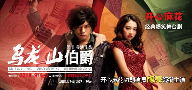 开心麻花金牌导演闫非成名之作,仅用6年时间突破1000场,平均每2天就有1场《乌龙山伯爵》上演。全国8个剧组同时演出,不下10个版本的演员,沈腾、马丽、杜晓宇、艾伦、王宁、常远等几乎所有开心麻花功勋演员都曾参演。