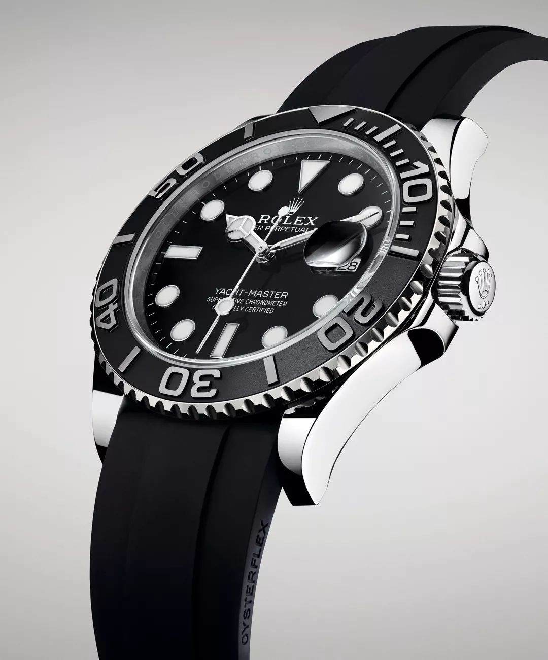 劳力士扩展游艇名仕型系列,推出新款,搭配42 毫米表壳:蚝式恒动游艇名仕型 42(Oyster Perpetual Yacht-Master 42)。游艇名仕型航海腕表配备双向旋转立体 60 分钟刻度外圈,极易辨识。游艇名仕型42 搭配哑光黑色 Cerachrom 陶质外圈,完美衬托黑色漆面表盘。以18ct 白色黄金打造,乃游艇名仕型系列首次采用此贵金属。表壳及表耳两侧折射出淡雅光泽,令蚝式表壳的轮廓更突出,倍添魅力。一如所有劳力士专业腕表,游艇名仕型无论在任何环境状况,即使在黑暗中,独特的Chromalight 夜光显示均能确保读时清晰。特大指针与钟点标记上涂有夜光物料,散发持久光芒。新款搭载制表技术领先的 3235 型机芯,是游艇名仕型首次搭载此款机芯。一如所有劳力士腕表,游艇名仕型42 均获超卓天文台精密时计认证,保证腕表于佩戴时能发挥超卓性能。
