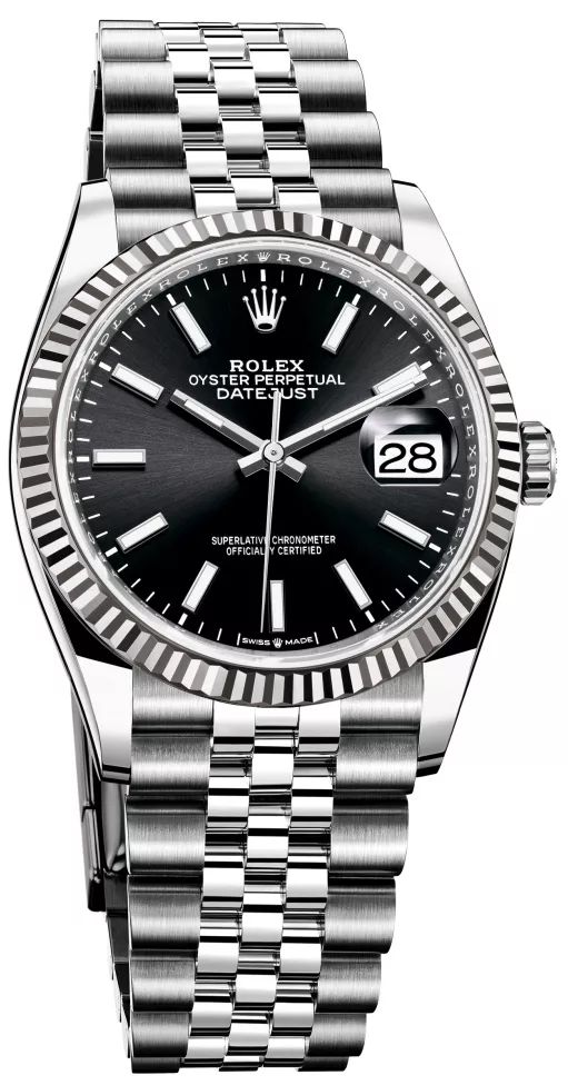 两款新款日志型 36 白色黄金钢款,分别搭配纪念型表带与蚝式表带。五格链节纪念型表带柔韧舒适,是劳力士在1945 年为蚝式恒动日志型(Oyster Perpetual Datejust)专门设计的一款表带。于三十年代末期推出的三格链节蚝式表带,坚固可靠。两款表带均配有摺叠蚝式带扣,带扣亦安装了劳力士研发的易调链节,佩戴者可轻易延长表带约5 毫米。隐蔽式耳盖确保表带和表壳之间达到无缝连接的视觉效果。